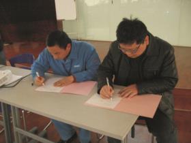 1月9日上午,上海公司成品生產(chǎn)部各車間在公司二樓培訓(xùn)室舉行《2009年目標(biāo)責(zé)任狀》簽訂儀式,成品生產(chǎn)部張建華經(jīng)理分別與金屬成品車間、金屬排練車間、尼龍成品車間、尼龍精品車間、塑鋼一車間、塑鋼二車間、尼龍注塑車間各主任簽訂責(zé)任狀,生產(chǎn)系統(tǒng)沈副總見證了這一莊重而嚴(yán)肅的簽訂儀式。 上海潯興金屬尼龍成品部 蔣成相